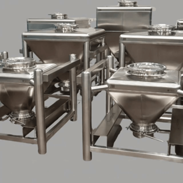 IBC tanks are the most important product group of the pharmaceutical, food and chemical industries. With IBC tanks, powders, raw materials, liquids and oils are stored, transported from one place to another, mixed, semi-finished products are shipped, and semi-finished or finished products are stored. Although they come in different lengths, volumes and dimensions, inlet and outlet connections and frames are produced as standard. Thus, it is possible to work in harmony with all machines. Our tanks are made of 316 L stainless steel and are suitable for easy stacking and use with lifting and carrying equipment thanks to their standard frame. Unlike the domestic market, we can weld with an 8-axis robot system. They are are manufactured compatible with the equipment of global leaders such as GEA, Glatt, Servolift, Müller, etc.